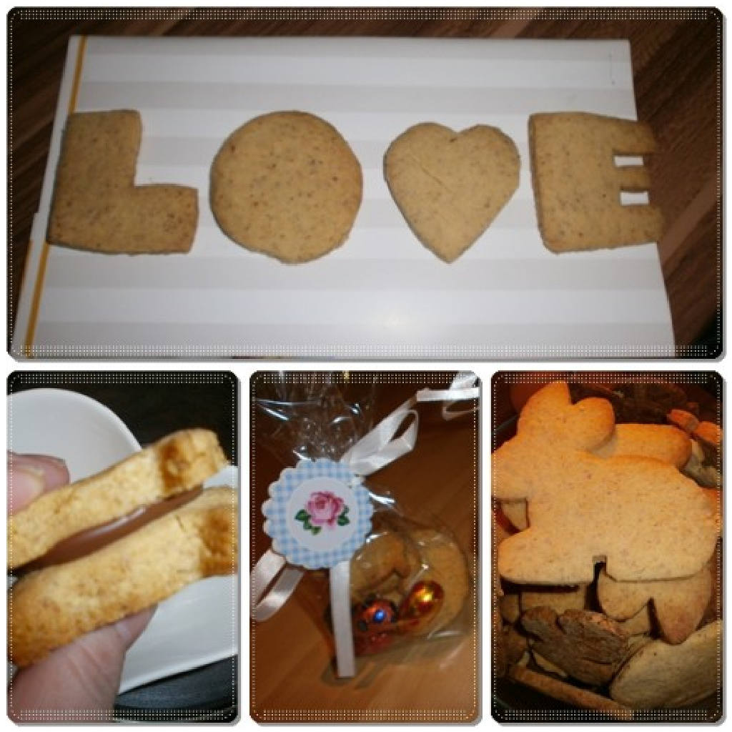 Teig in kleinen Mengen ausrollen und kleine runde Plätzchen ausstechen (geht am besten, wenn man den Teig zuvor etwas in den Kühlschrank stellt).Die Plätzchen auf ein mit Backpapier ausgelegtes Backblech legen.