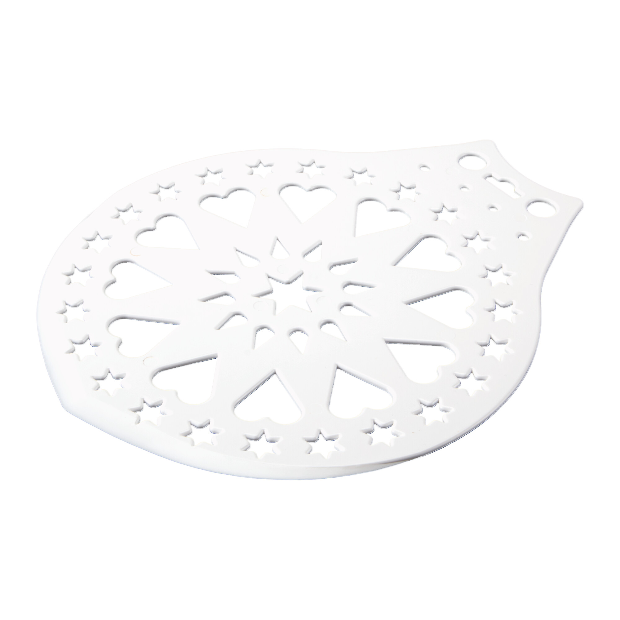 Kuchenheber & Verzierschablone ø 28 cm Weiß, Material Kunststoff. Ein unerlässlicher Helfer beim Backen. Sicher und leicht den Tortenboden oder eine komplette Torte umheben, das gelingt mit diesem Kuchenheber. Außerdem kann er noch als Verzierschablone für Puderzucker- oder Kakaodekorationen benutzt werden.
