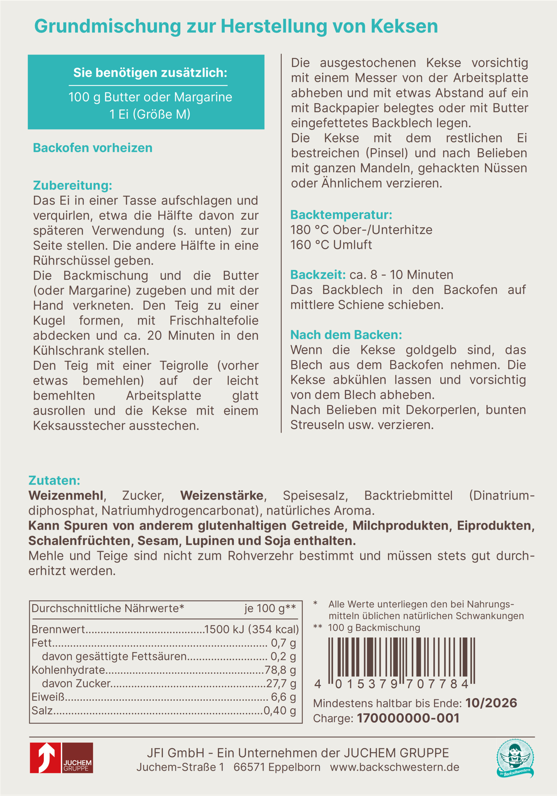 Alle weiteren Informationen finden sie auf der Rückseite der Backmischung.