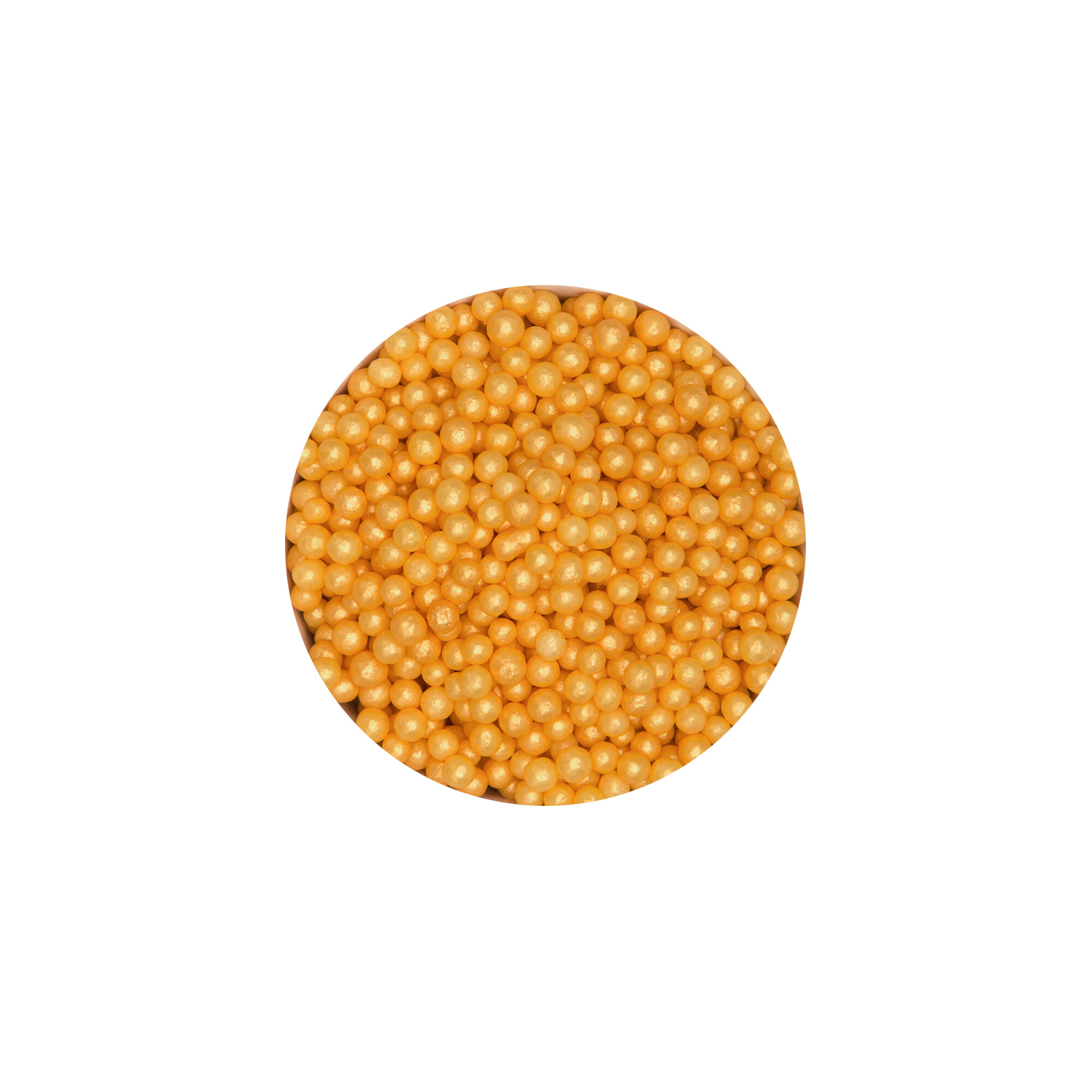 Perlen Mini ø 3–4 mm Gold – Essbarer Streudekor glimmer 65 g. Zum Dekorieren und Verzieren von Pralinen, Petits Fours, Torten u.v.m.