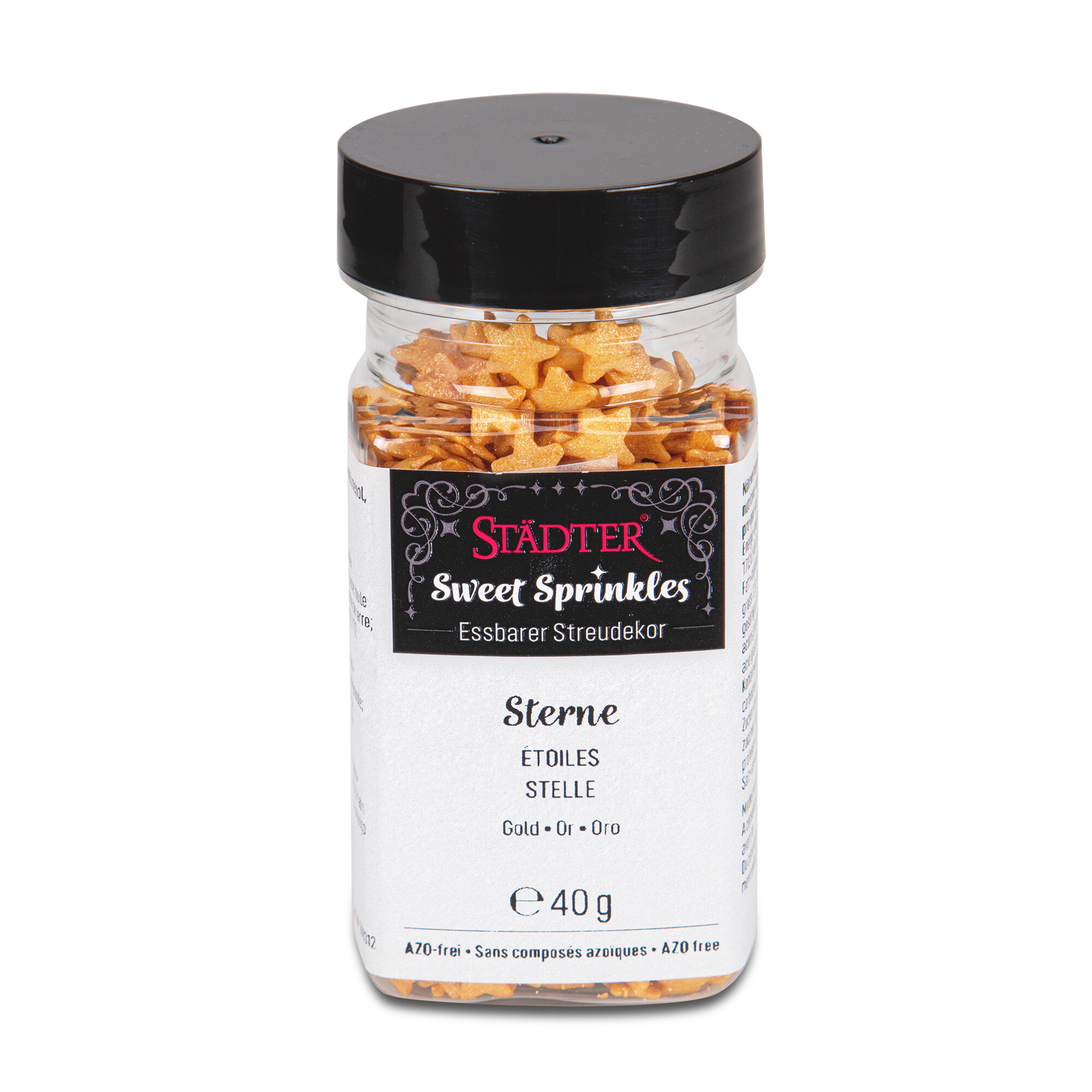 Sterne Gold – Essbarer Streudekor glimmer 40 g. Zum Dekorieren und Verzieren von Pralinen, Petits Fours, Torten u.v.m.