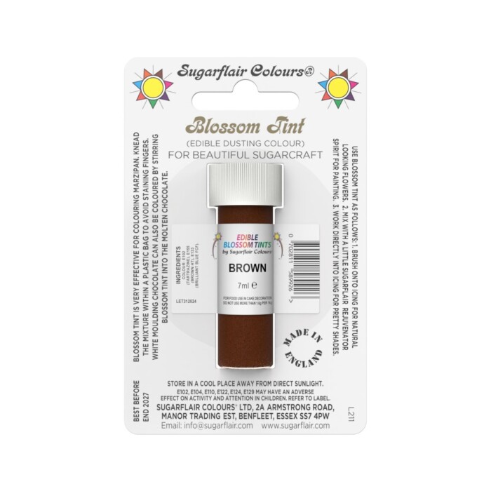 Sugarflair Blossom Tint Dusting Colours sind essbare Farbpulver, die geeignet sind, um tolle, naturgetreue Effekte auf beispielsweise Blumen und Blättern aus Marzipan, Fondant oder Gum Paste (Blütenpaste) zu kreieren, aber natürlich auch auf Gesichtern, Figuren usw. Für optimale Ergebnisse empfehlen wir, das Pulver mit einem weichen Pinsel sparsam aufzutragen.