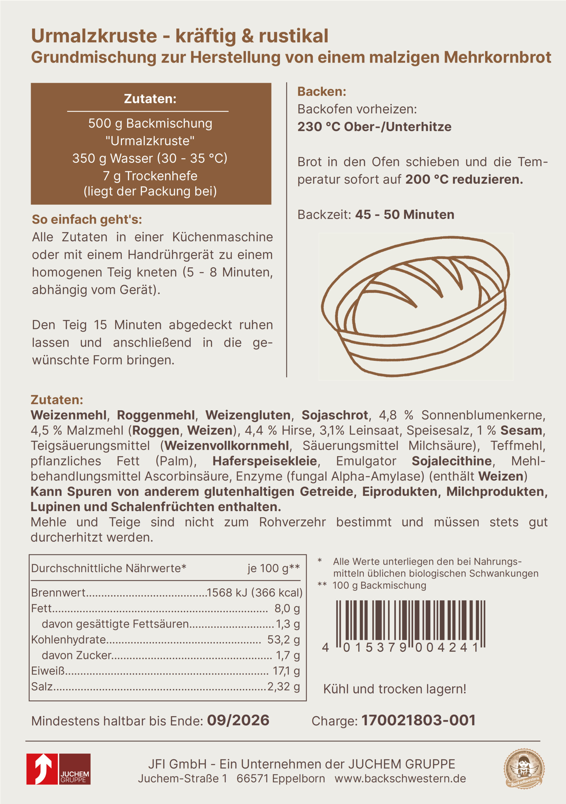 Schreiben Sie die erste Rezension für „Urmalzkruste 500g + 7g Hefe“